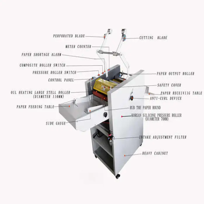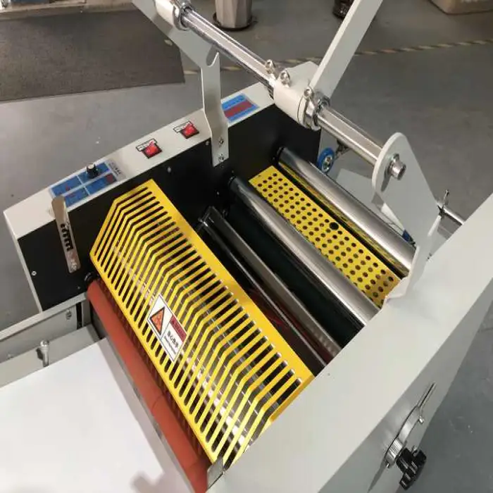 Regular maintenance includes keeping rollers and film paths clean, checking heater and pressure settings, inspecting cutting and slitting blades, and following the manufacturer's maintenance schedule. Always power off and cool down before cleaning.