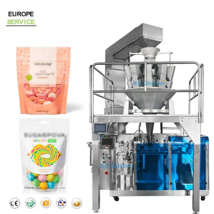 Multi Function Automatic Cotton Candy Sugar Packaging Machine Zipper Doypack Pouch Gummy Candy Filling Packing Machine