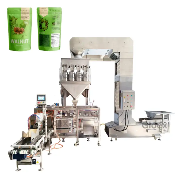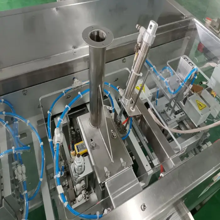 It can package products into bags and pouches, accommodating different product types and sizes.