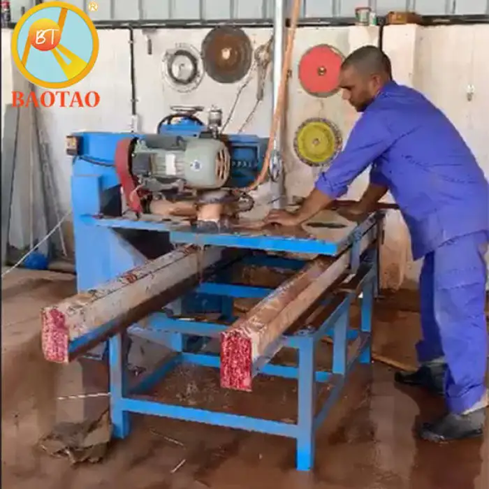 The machine is designed to cut stone, ceramic, porcelain, and marble materials with high precision.