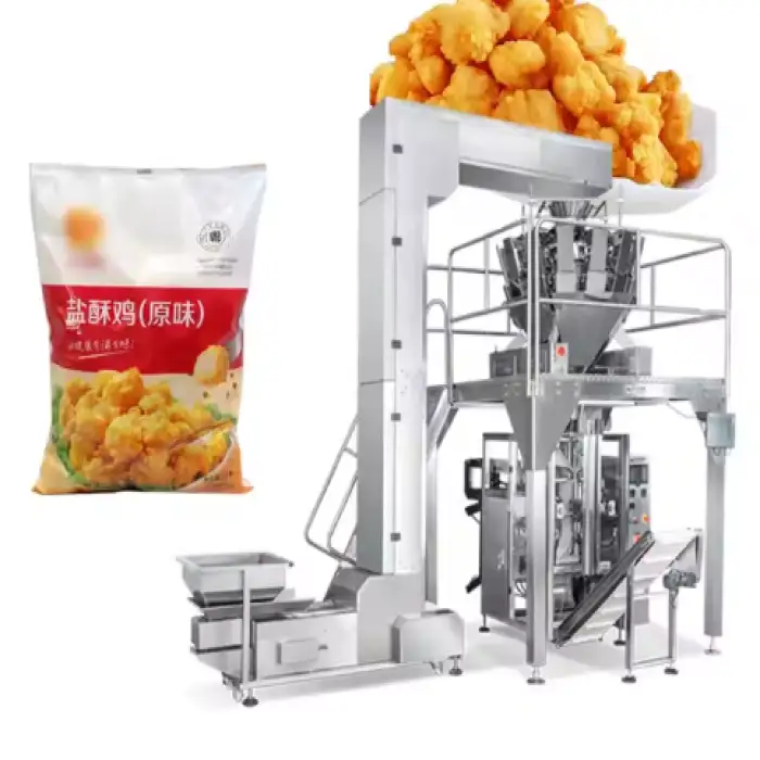 This machine is designed for packing a variety of products including rice, vegetable seeds, puffed foods, and even chemical products.