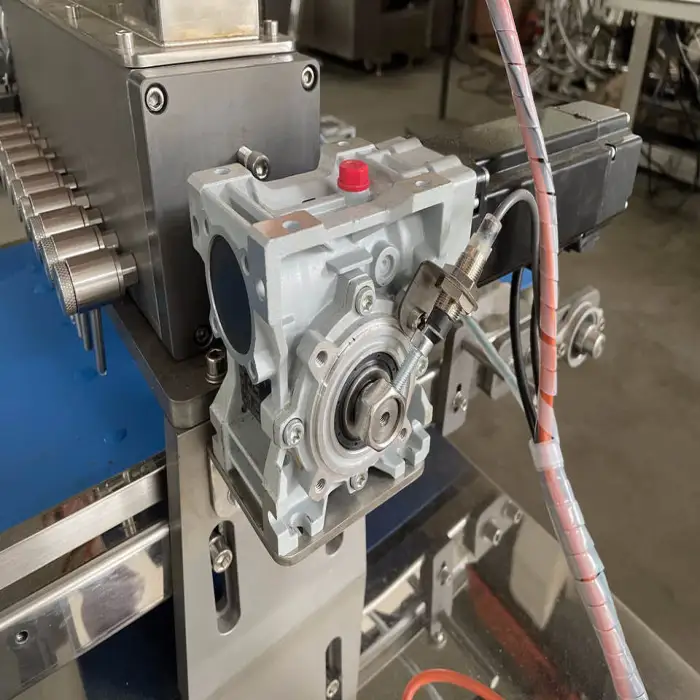 The semi-automatic function allows for manual control of certain processes while automating others, streamlining candy production.