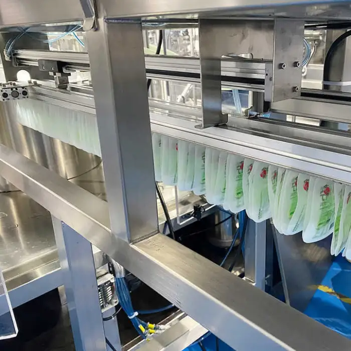 This machine is compatible with stand-up pouches and bags made of plastic materials.