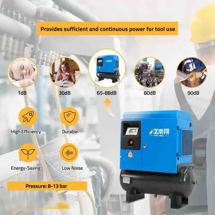 The Nanxiang Quiet Air Compressor is available in four power ratings: 3.7kw, 4.5kw, 5.5kw, and 7.5kw.