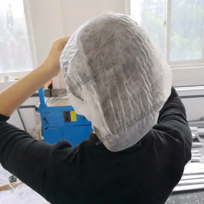 The machine can produce caps using high-quality polyethylene (PE) and non-woven materials.