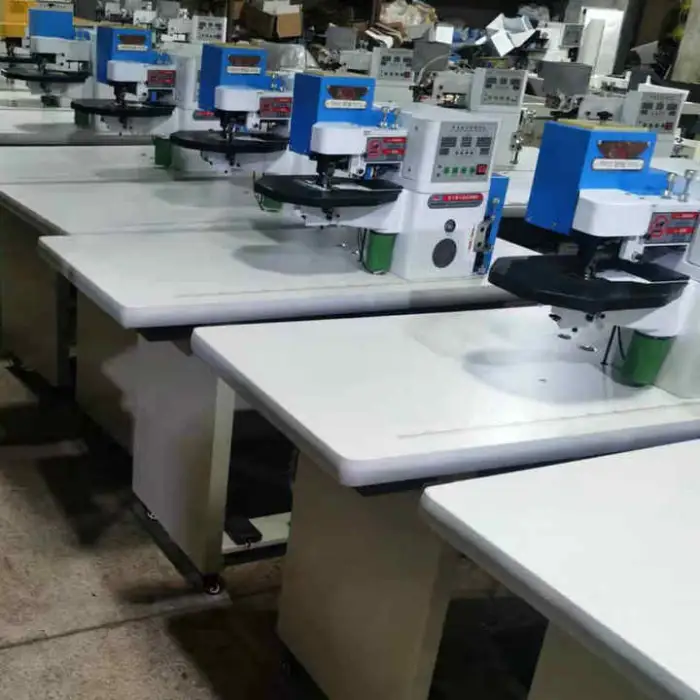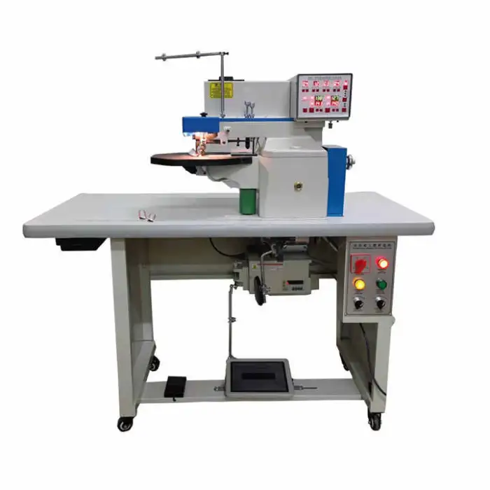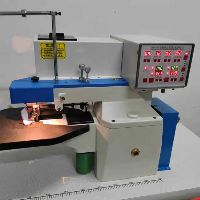 The machine is designed for making leather shoes, creating bags with folded edges, assembling suitcases, and producing high-quality leather goods.