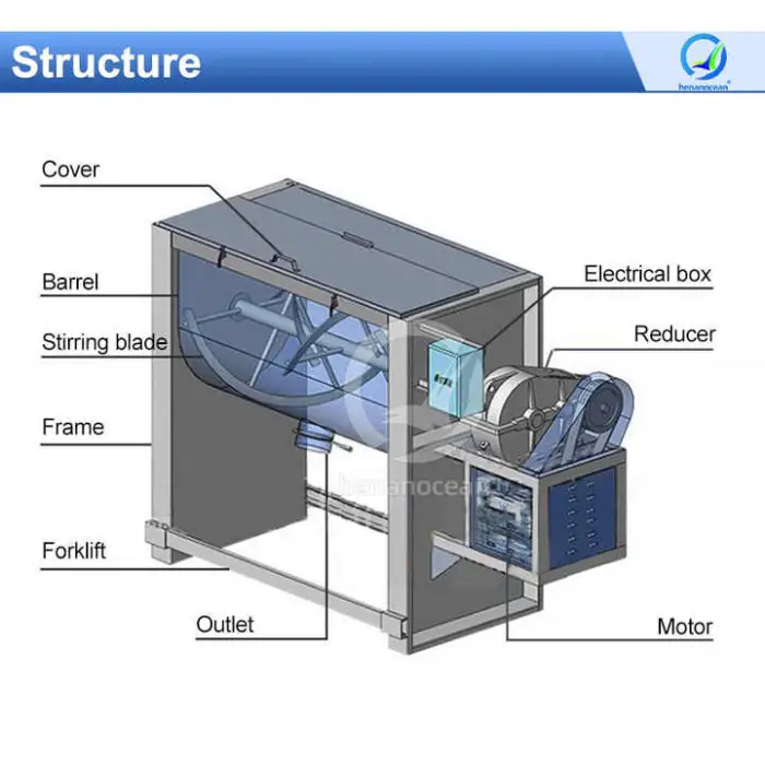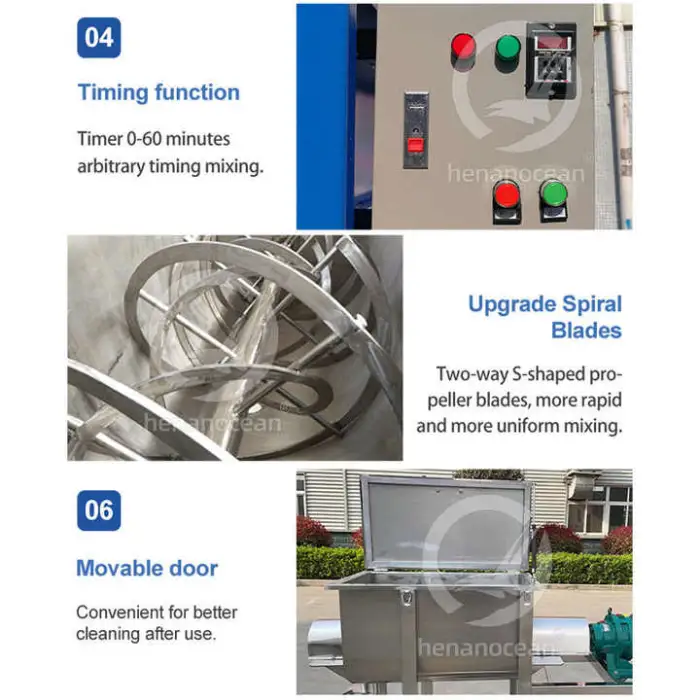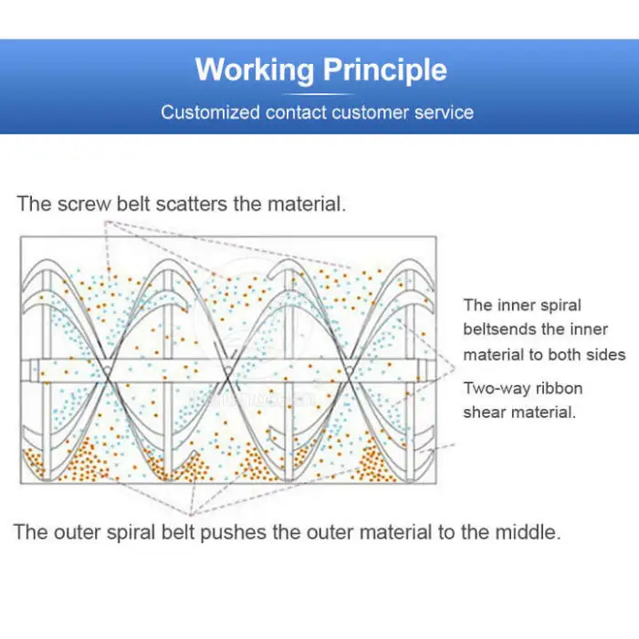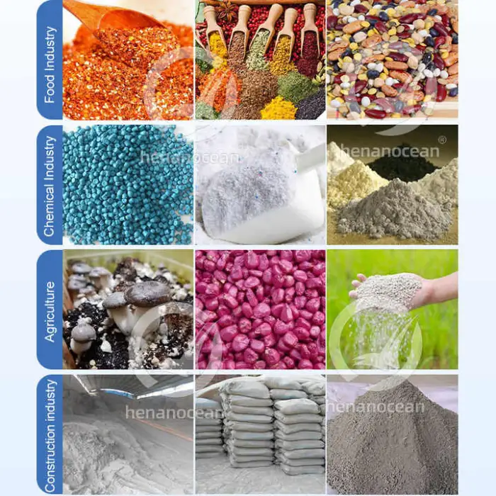 Industries such as detergent manufacturing, chemical mixing, food processing, building materials production, and agriculture can benefit from this mixer.