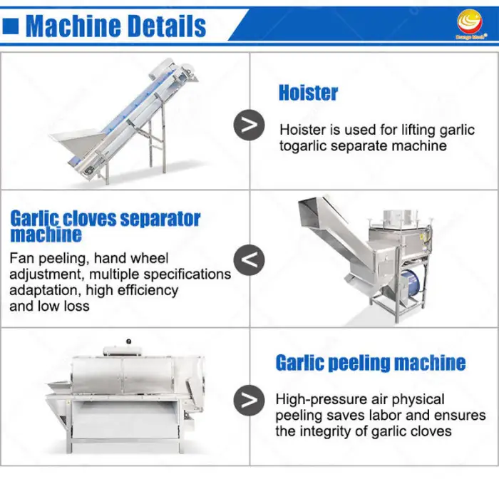 The machine boasts a quick peeling time of less than 2 hours, making it highly efficient for large volumes of garlic.