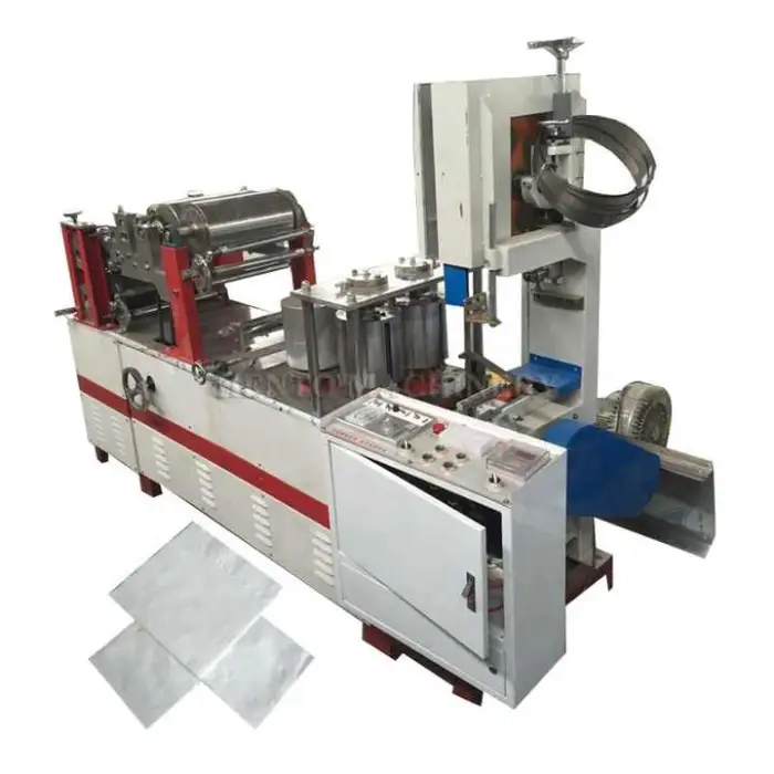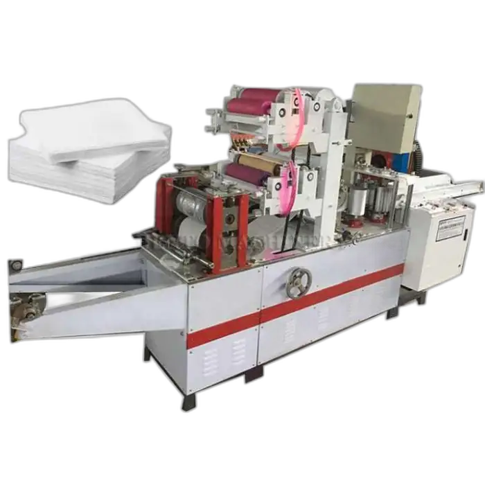 The machine outputs folded napkins ready for manual or automated packaging. Depending on your needs, the supplier can advise on compatible packaging equipment or automation for bundling and boxing; you may also package manually for small runs.