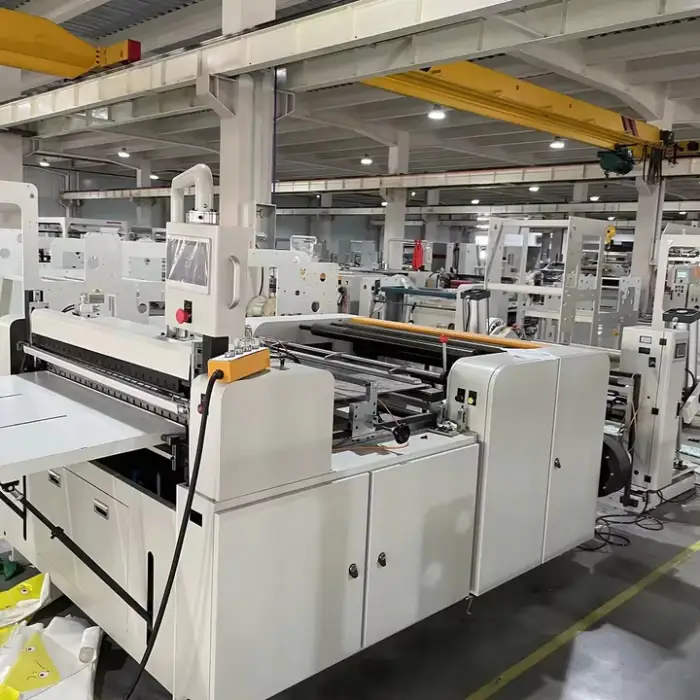 Yes. With PLC options from Omron, ABB or Siemens and standard industrial interfaces, the sheeter can be integrated with upstream unwinders and downstream stackers/packaging lines. Provide your line specifications so the supplier can confirm compatibility.