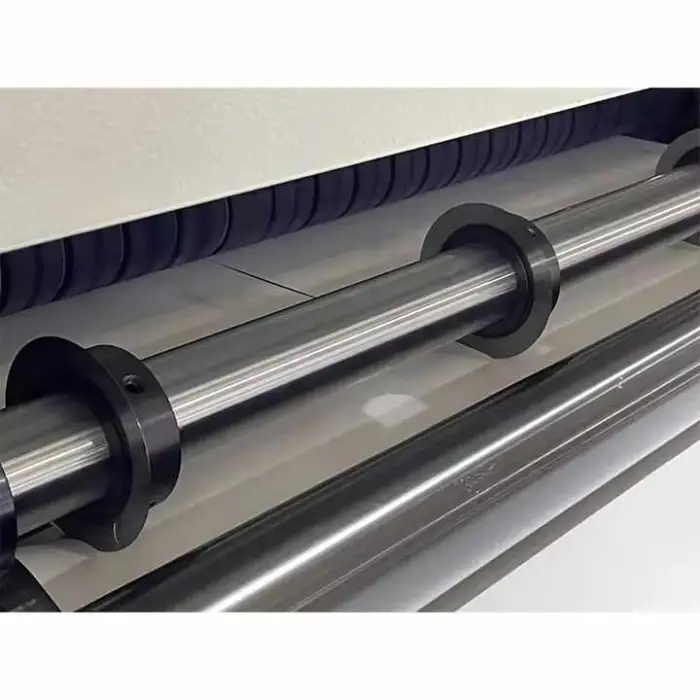 The machine uses industrial cutting blades or tooling appropriate to the material (rotary, guillotine or slitting blades depending on configuration). Blade life varies with material and usage; routine inspection and periodic sharpening/replacement are recommended. Discuss blade options and maintenance intervals with the manufacturer.