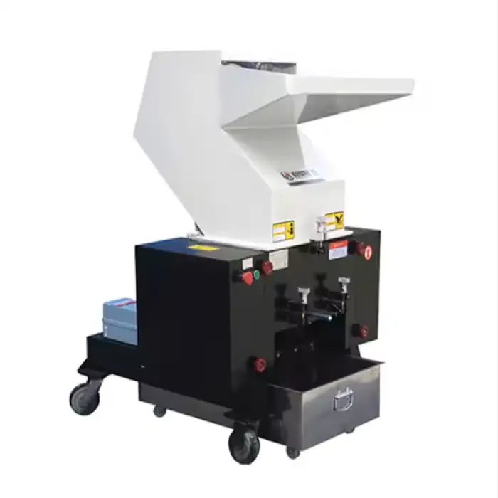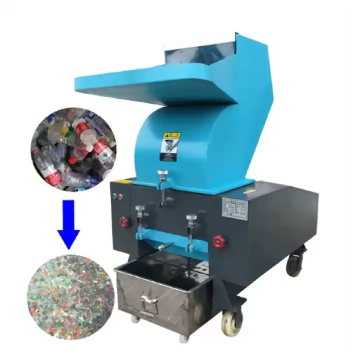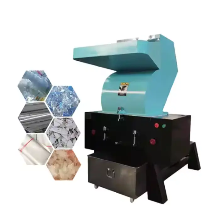 The PET Plastic Shredder Crusher can process various types of plastic including PVC, PET, ABS, PP/PE, PE, PP, PC, PMMA, PA, and PS.