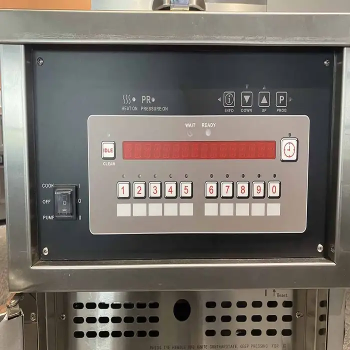The PFG-800 features an easy-to-use computer control panel that allows you to monitor and adjust the frying settings.