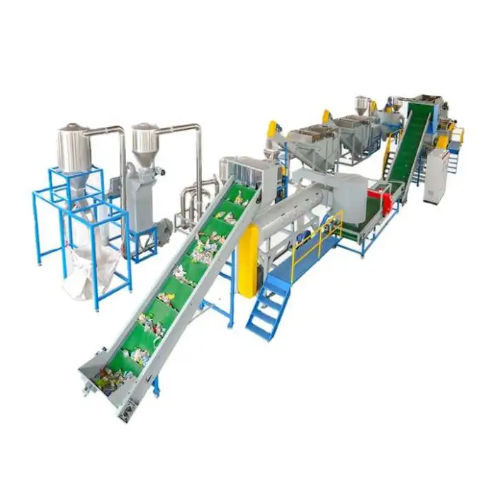 The machine is specifically designed to process PET bottles, which are commonly used for beverages and other consumer products.
