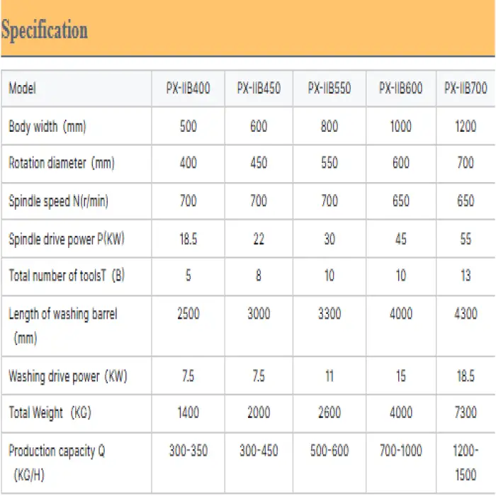 The machine line has multiple capacity options: 300, 500, 1000, 1500, and 2000 kg/h.