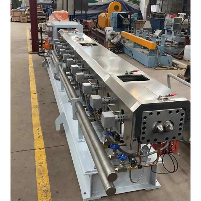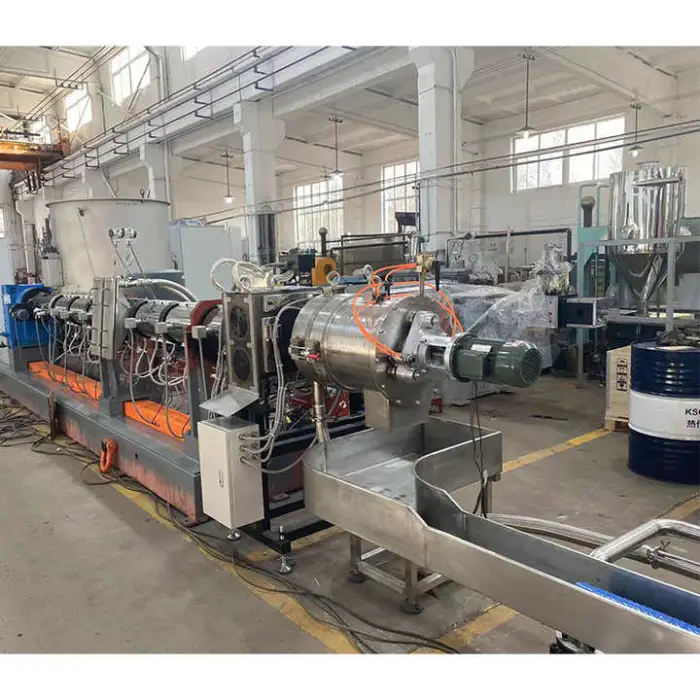 The extruder machine is suitable for plastic extrusion applications, including the production of granules.