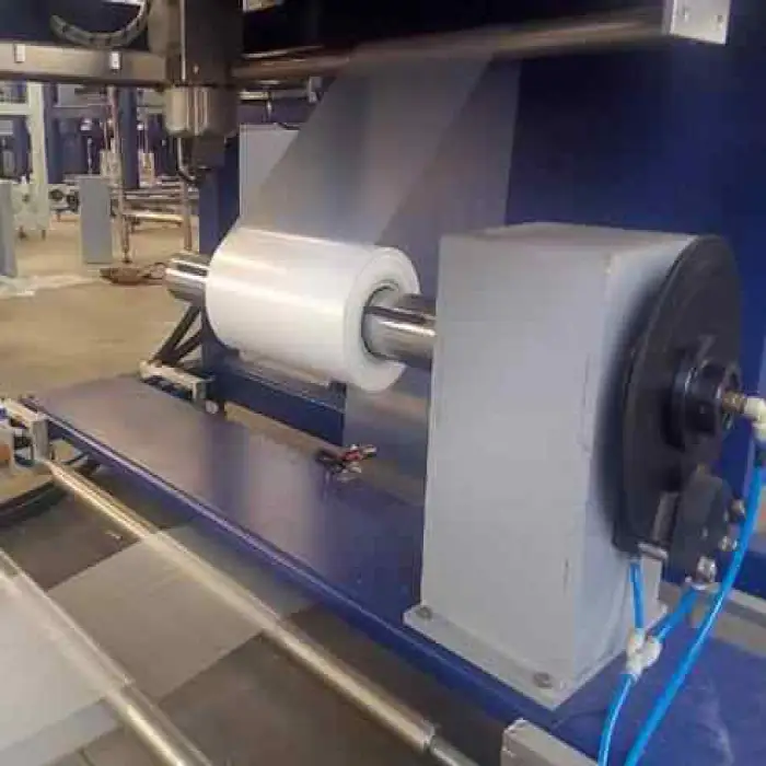 The machine is designed to work primarily with PE film for packaging, ensuring secure wrapping of various items.