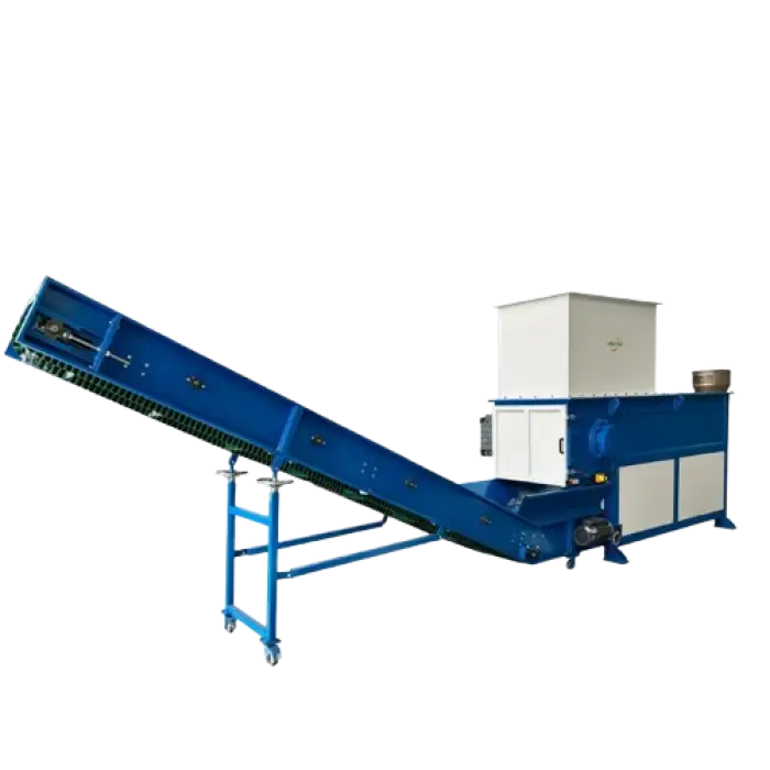 The shredder has a maximum production capacity of 1000 kg/h, making it highly efficient for recycling operations.