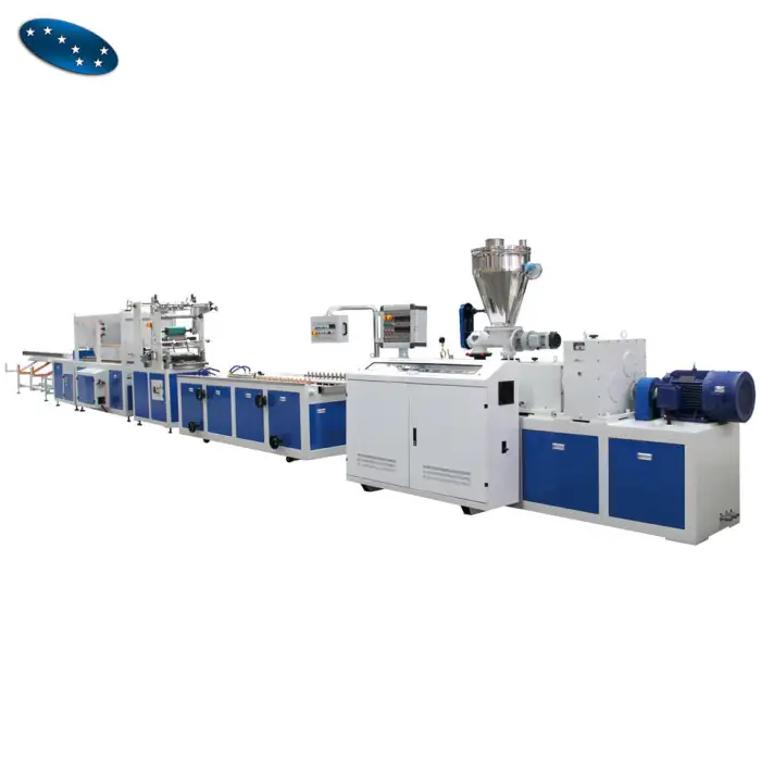 This machine is designed to produce PVC profiles and boards, making it suitable for various applications including room ceiling decoration.