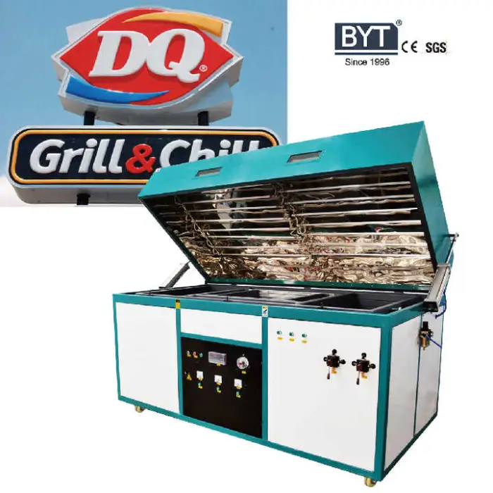 The Plastic Vacuum Forming ABS Advertising Light Board Blister Machine can work with various plastic types including PE, PP, PVC, PET, ABS, PS, HIPS, and PMMA.