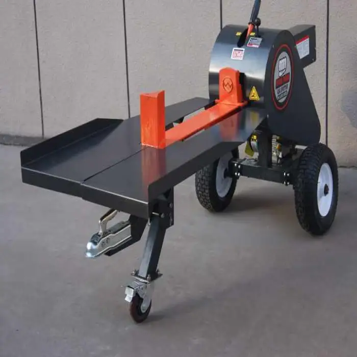 The log splitter can handle a variety of wood types, making it suitable for firewood and logging tasks.