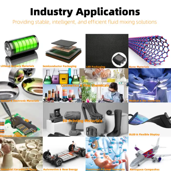 This mixer is ideal for professionals in industries such as cosmetics, paints, chemicals, and any field requiring precise material mixing.