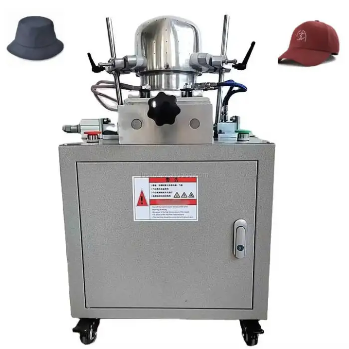 This fully automatic machine is designed to remove wrinkles and restore shape to baseball hats, fisherman hats and similar headwear, making them look fresh and display-ready.