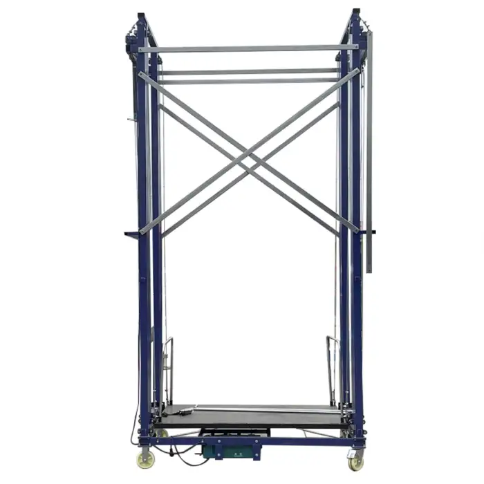 The platform is electric-powered and available for standard single-phase voltages, including 110V and 220V. Confirm voltage and plug requirements with the supplier when ordering.