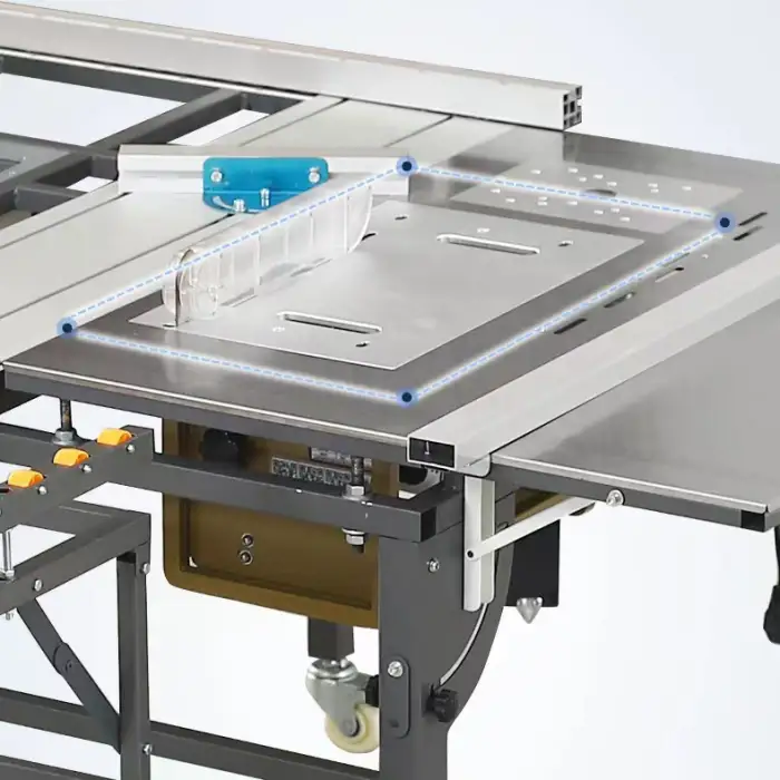 The maximum cutting size of the saw is 2440 mm x 2440 mm x 50 mm.