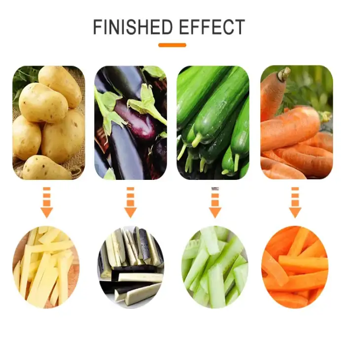 The Potato Cut Wedges Machine is made from high-quality 304 stainless steel, ensuring durability and resistance to corrosion.