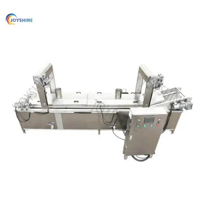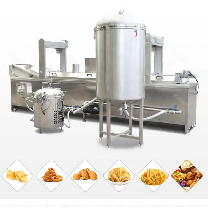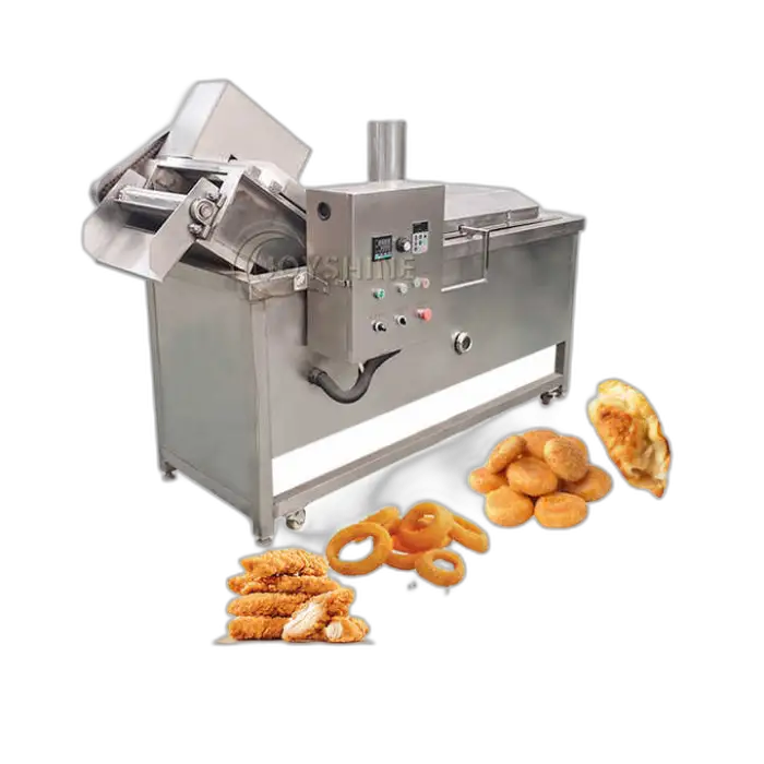 The machine has a high capacity of 300 kg/h, making it suitable for large-scale frying operations.