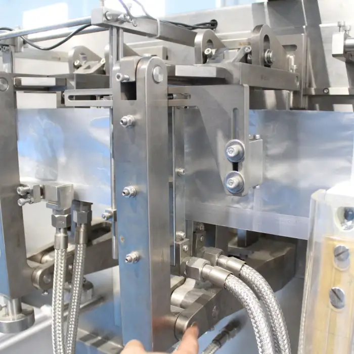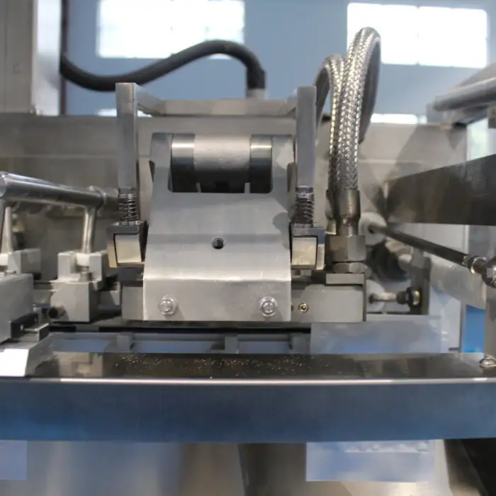 The machine can create 3 or 4 side seal pouches.