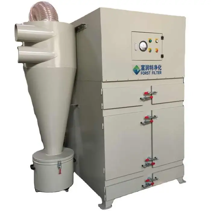 The automatic air pulse jet cleaning system uses short bursts of high-pressure air to clean the filter, maintaining optimal performance with minimal manual intervention.