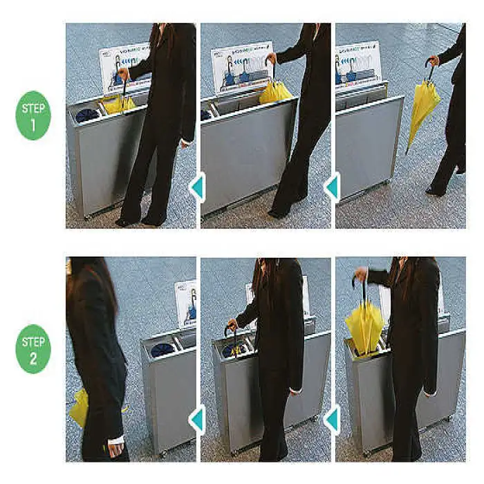 The umbrella dryer is made from durable stainless steel, ensuring efficiency and longevity.