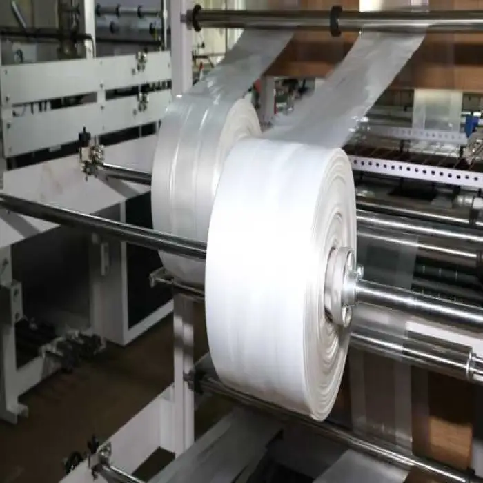 This fully automatic machine produces high-quality plastic T-shirt (patch) bags made from PP or PE film, suitable for retail, supermarkets, promotional bags and general packaging.