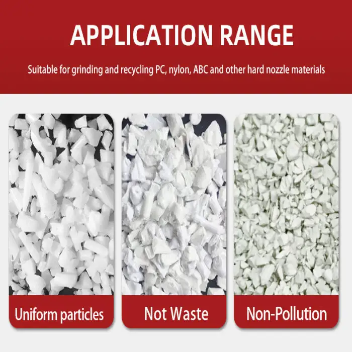 The PQ-ZL05HP can efficiently process various types of plastics including PVC, PET, ABS, and PP/PE.