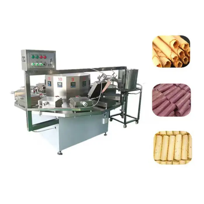 While primarily designed for ice cream cones and egg rolls, it may also be used for other similar snack food production.
