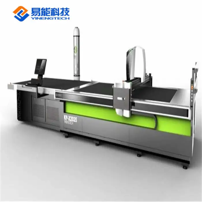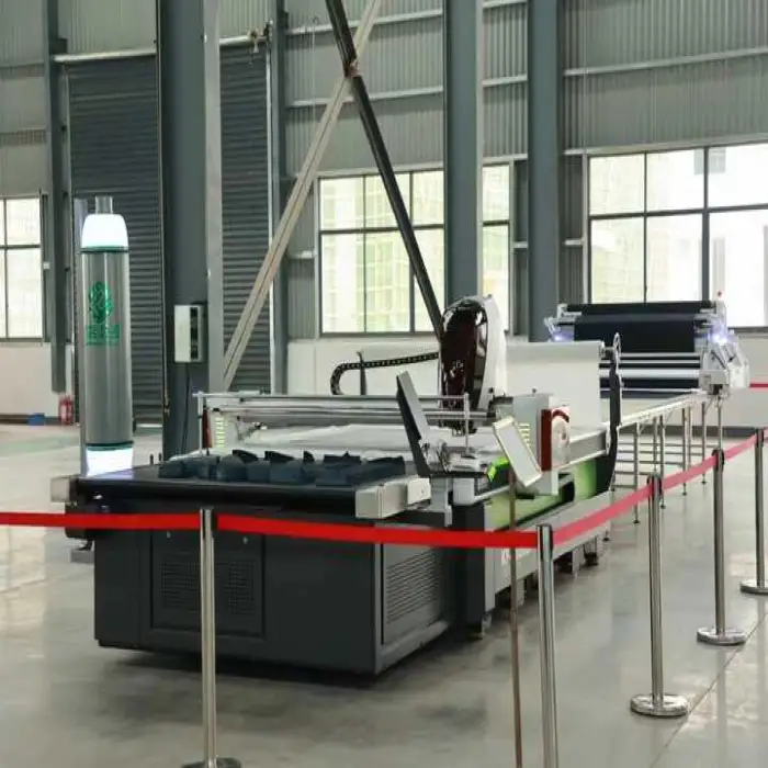 The machine can handle various materials, including nonwoven, yarn, and fiber fabrics.