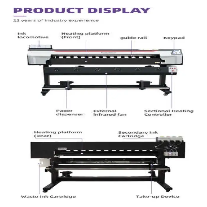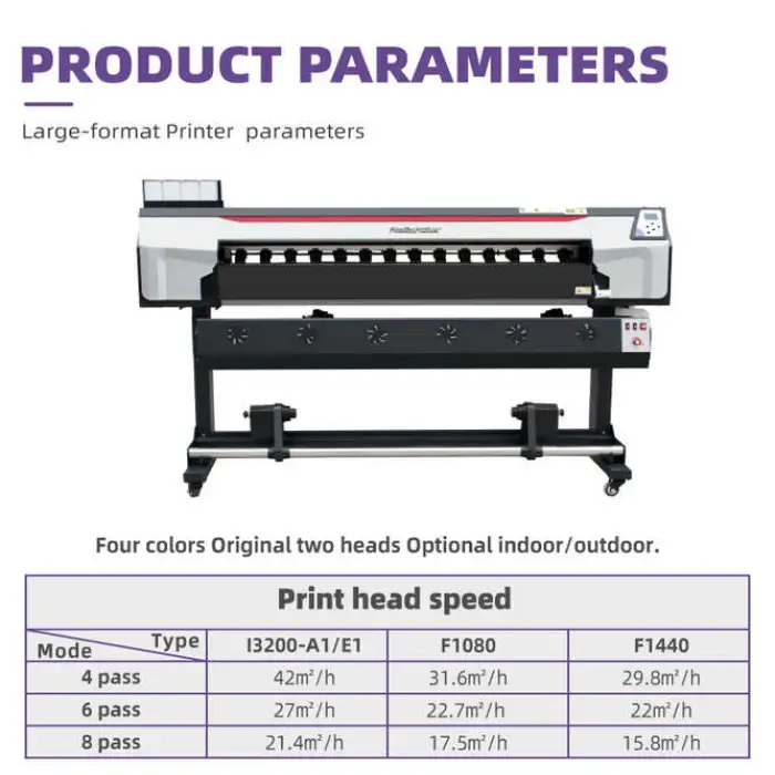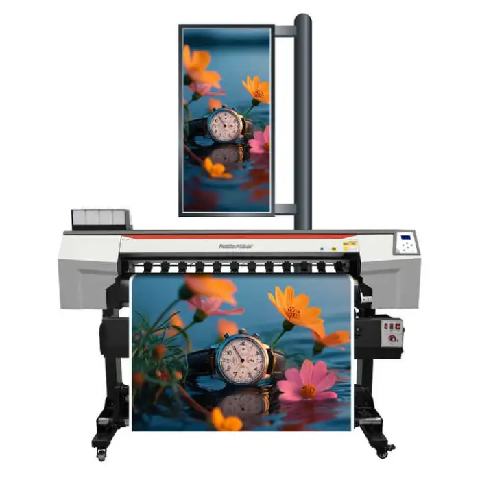 This printer uses eco-solvent ink, which provides vibrant colors and durability.