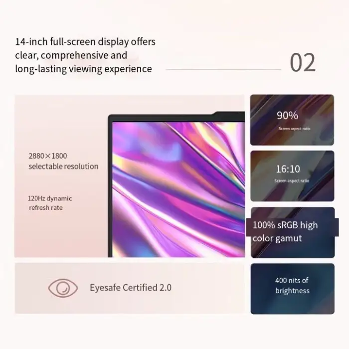 The laptop features a stunning 2.8K display with a resolution of 2880x1800, ensuring clear and vibrant visuals.