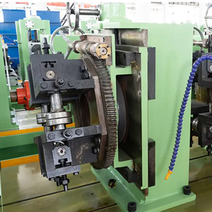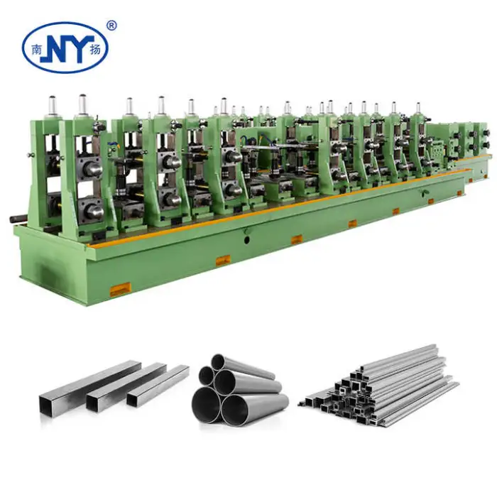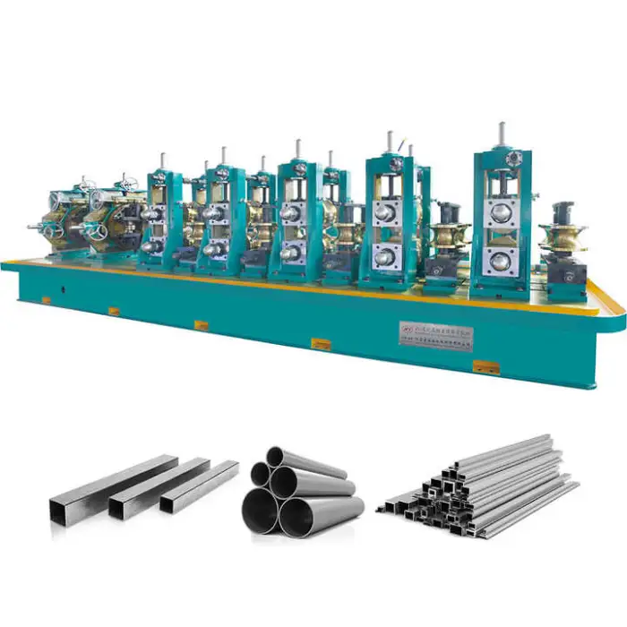 The machine utilizes high-frequency power to ensure consistent and high-quality welding of the pipes.
