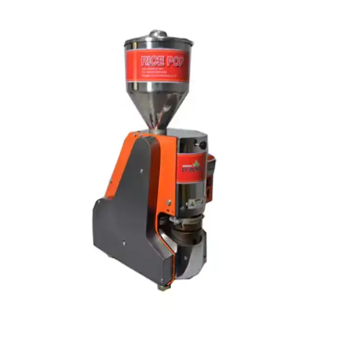 The Korea Puffed Rice Snacks Rice Crackers Making Machine uses an electric heat source for consistent cooking.