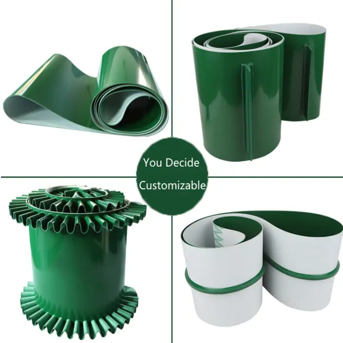 The belt is available in PU, PVC, and rubber, providing adjustable elasticity, high strength, and resistance to aging.