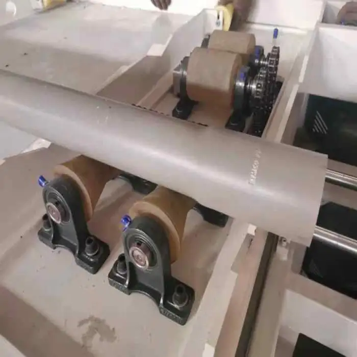 The machine can handle multiple materials including PE, PP, PVC, and HDPE.