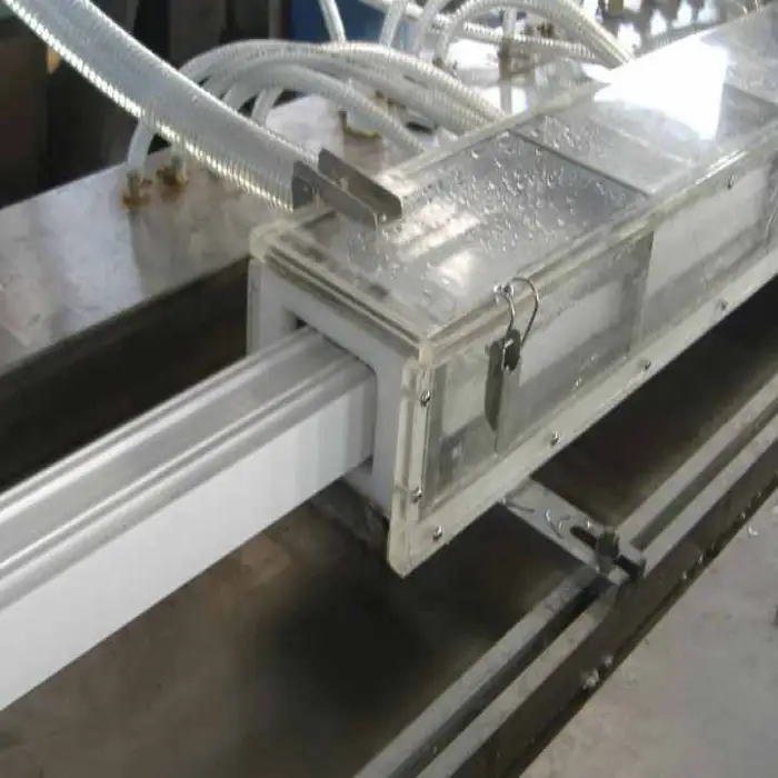 The machine can produce solid and hollow profiles suitable for PVC ceilings, windows, and doors.