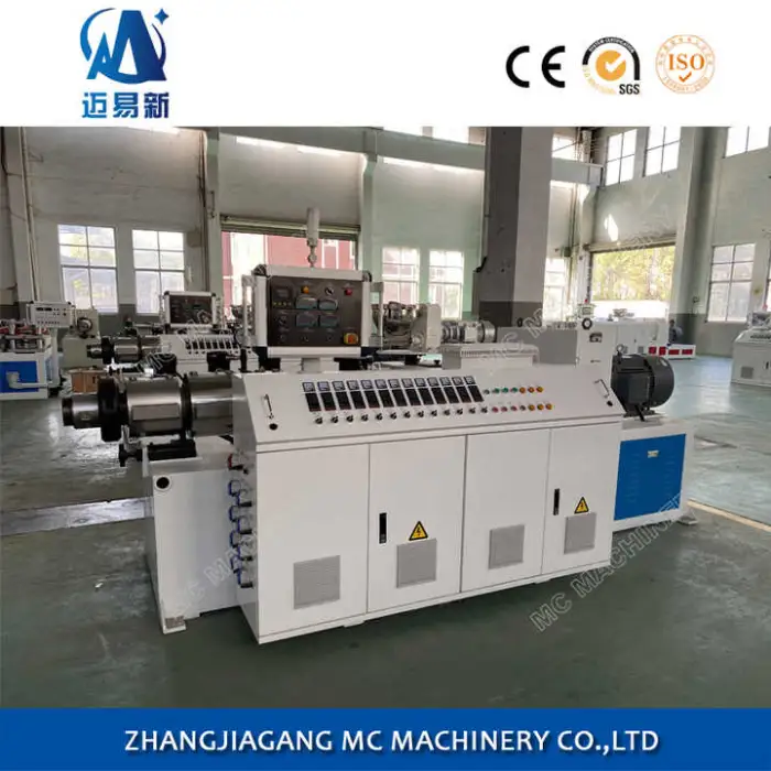 The SJSZ65/132 features a double-screw design, which enhances productivity and ensures smooth operation during the extrusion process.