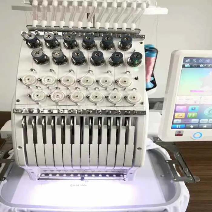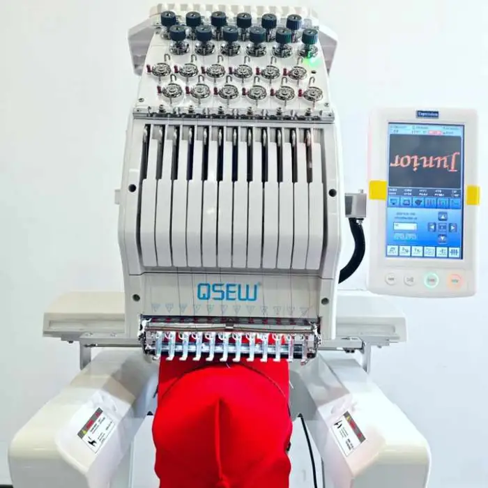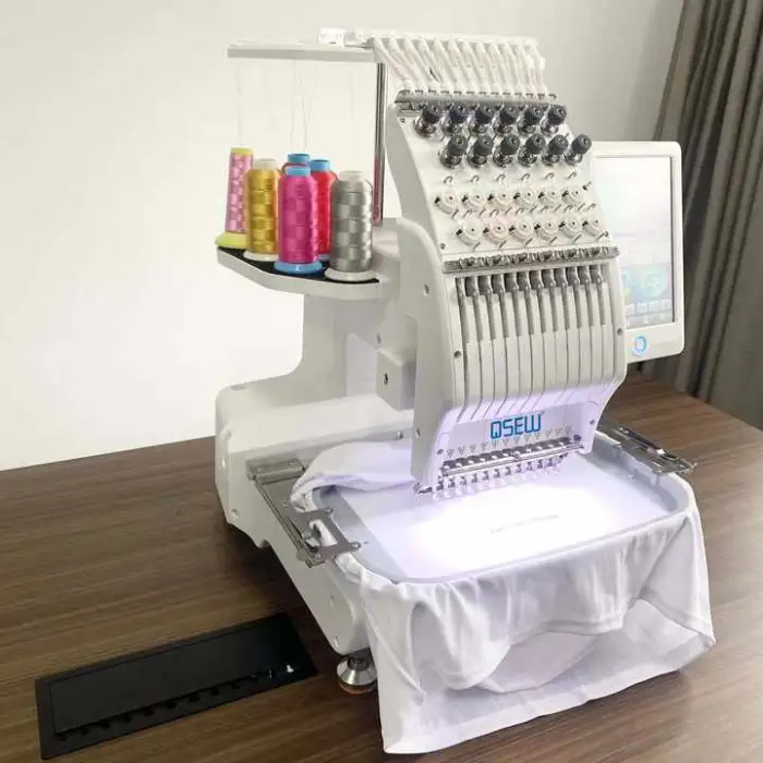 The QS-1201 is a single head flat embroidery machine.