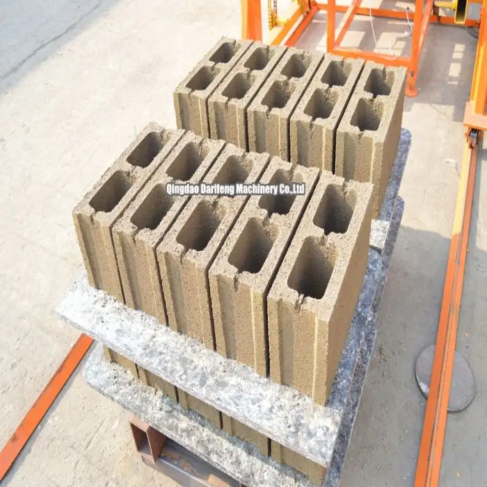 The QT4-15 can produce various types of bricks, including hollow, solid, interlocking, paving blocks, and curbstones.