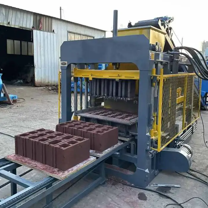 The QT4-15C is designed for high efficiency and has a large production capacity, allowing for rapid production of blocks.
