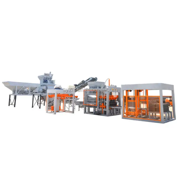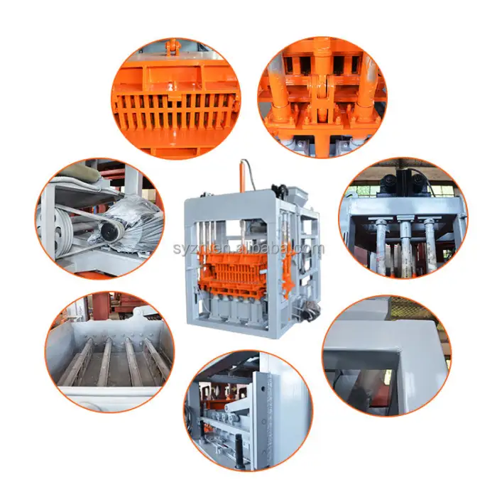 The QT5-15 machine is designed to work with concrete, cement, and clay materials for brick production.